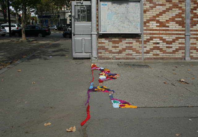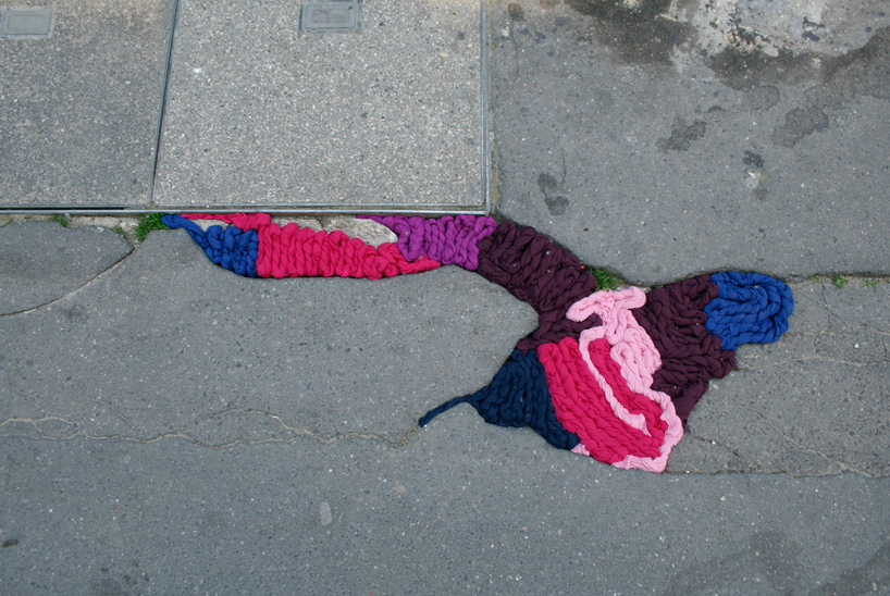 the 'canvas' of her project, the site-specific pieces are a playful addition to the grey urban setting.